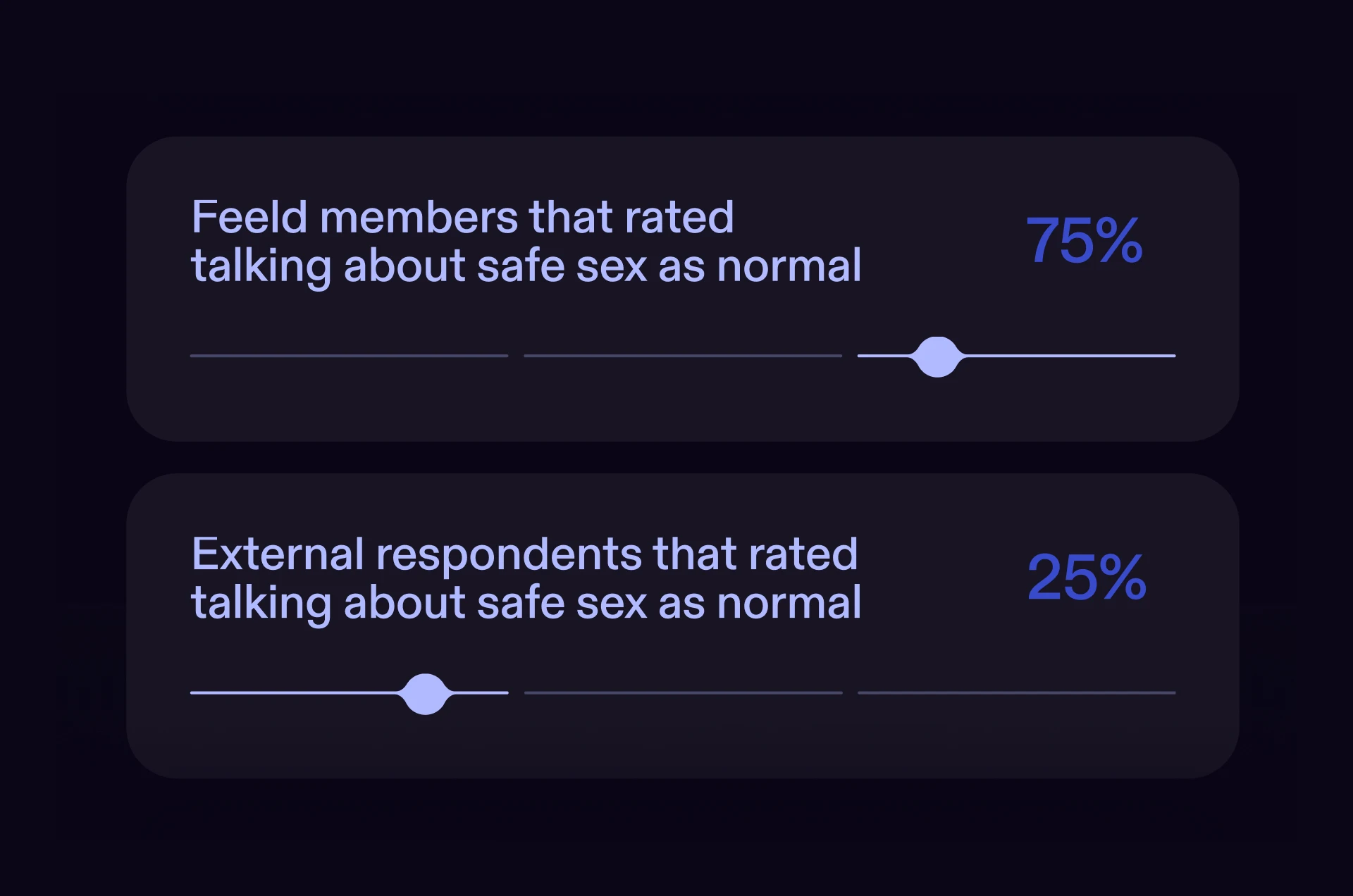 - 75% of Feeld members rated talking about safe sex as normal, compared to only 25% of external respondents.