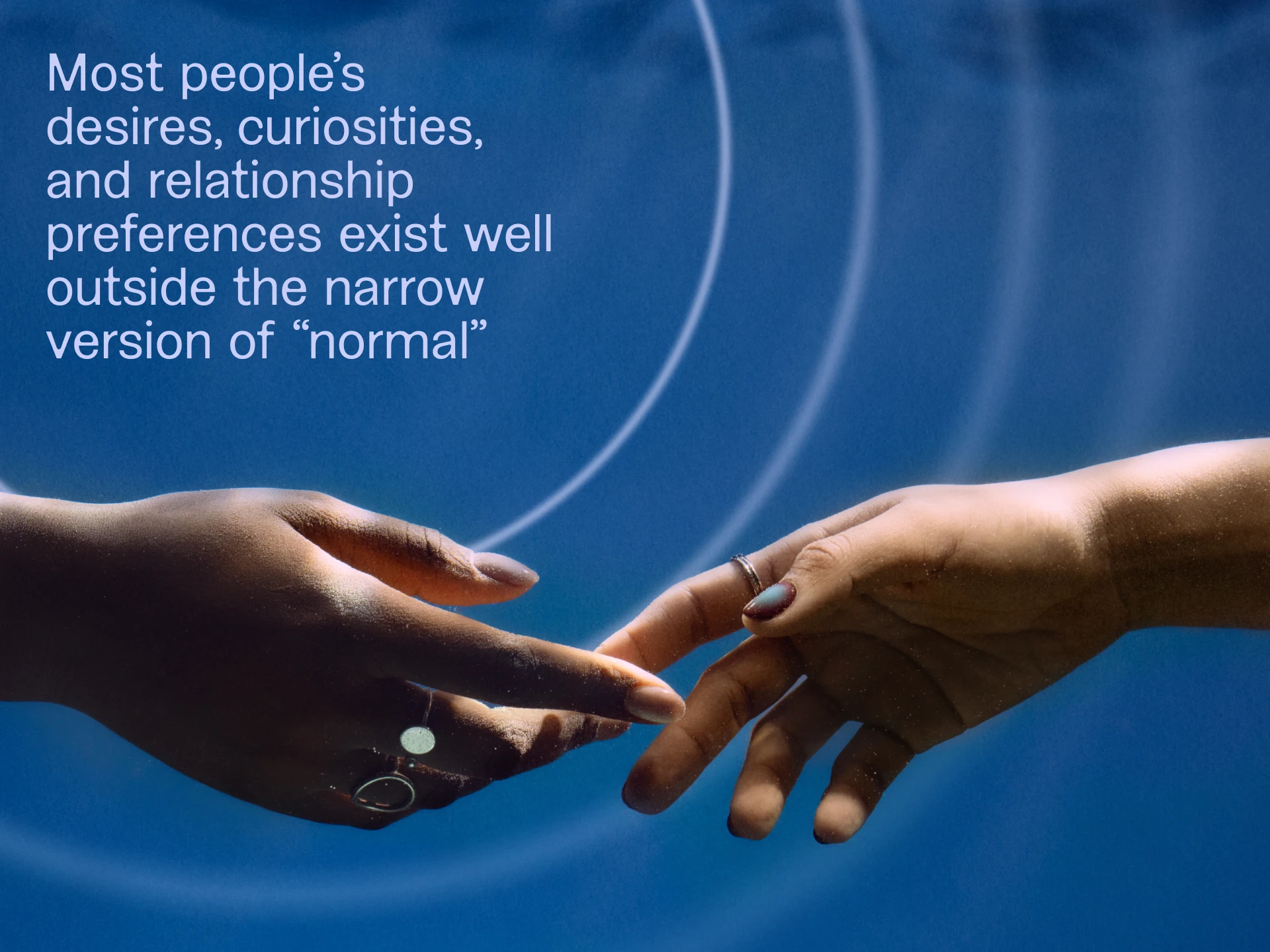 When it comes to norms around sexuality, expression, and dating, perception and reality could not be more at odds with each other. There is no agreed upon definition of “normal.” We found that if you practice it, and it is in the scope of your reality, you consider a desire to be “normal.” This phenomenon starts to crack our understanding of the word normal. Are you normal? No, you’re just you.