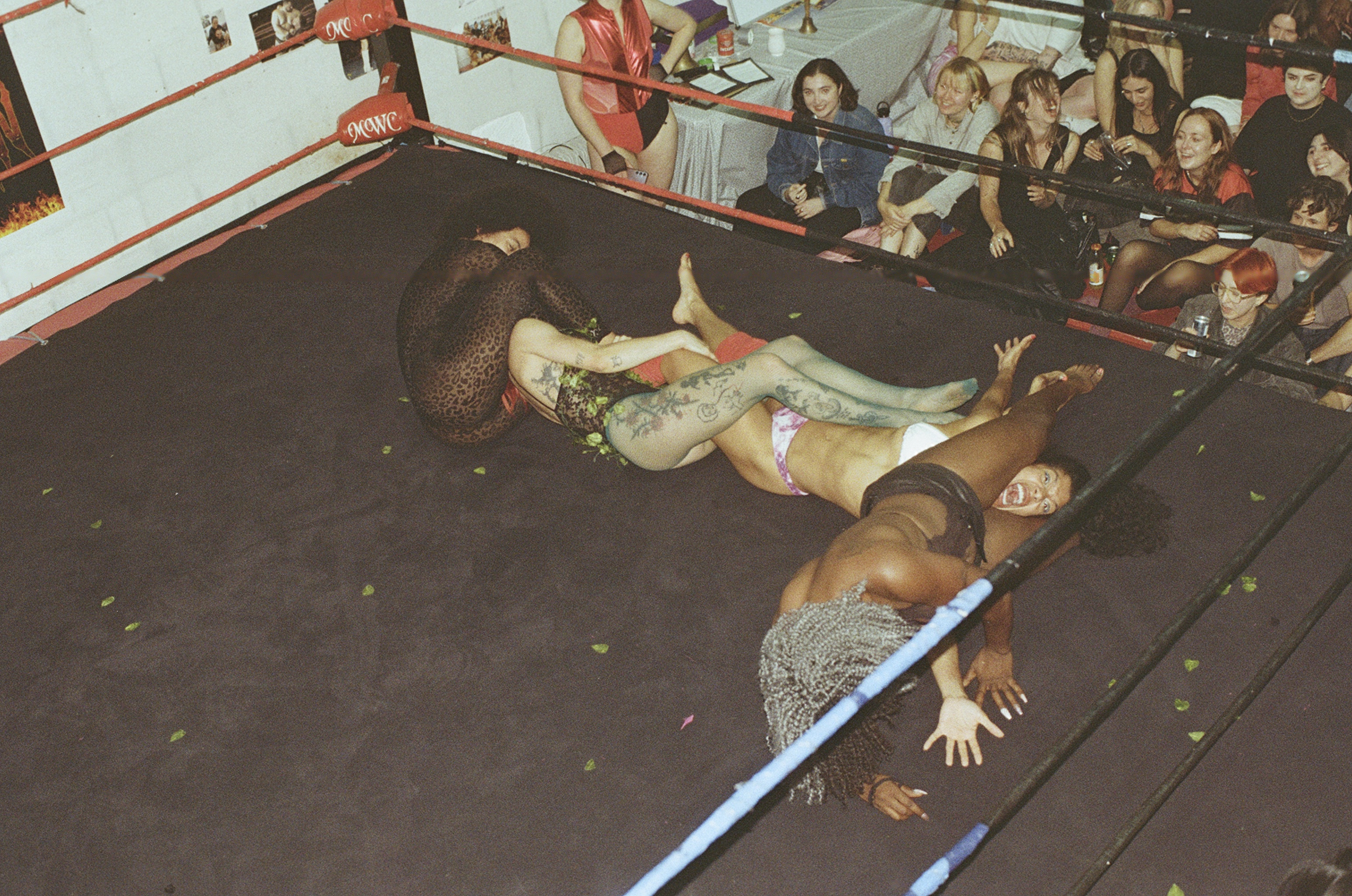 Venus began hosting kink wrestling battles last year, following the release of the romantic thriller Love Lies Bleeding, when “there was this surge of interest in strong women,” yet wrestling games seemed to only cater to a straight male audience. In the UK, a number of venues, such as The Submission Room in London and The Wrestling Factory in Manchester, host session wrestling competitions, but Venus hadn’t come across any events that were run exclusively for lesbians and bisexuals. “We wanted to do something that allowed us to be more free,” she told me.